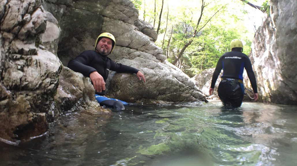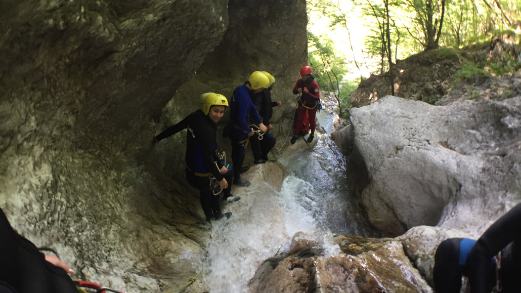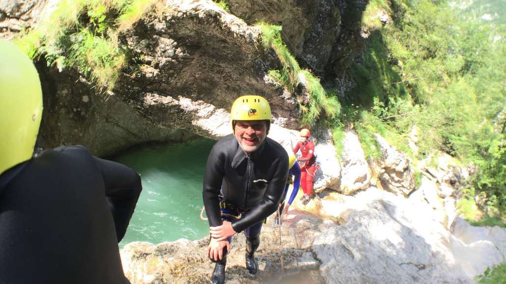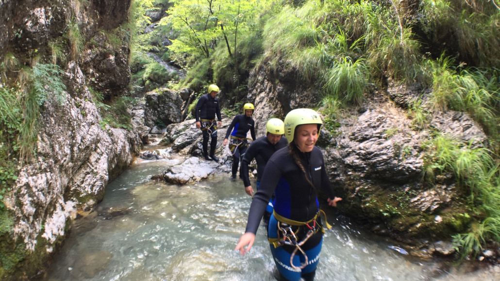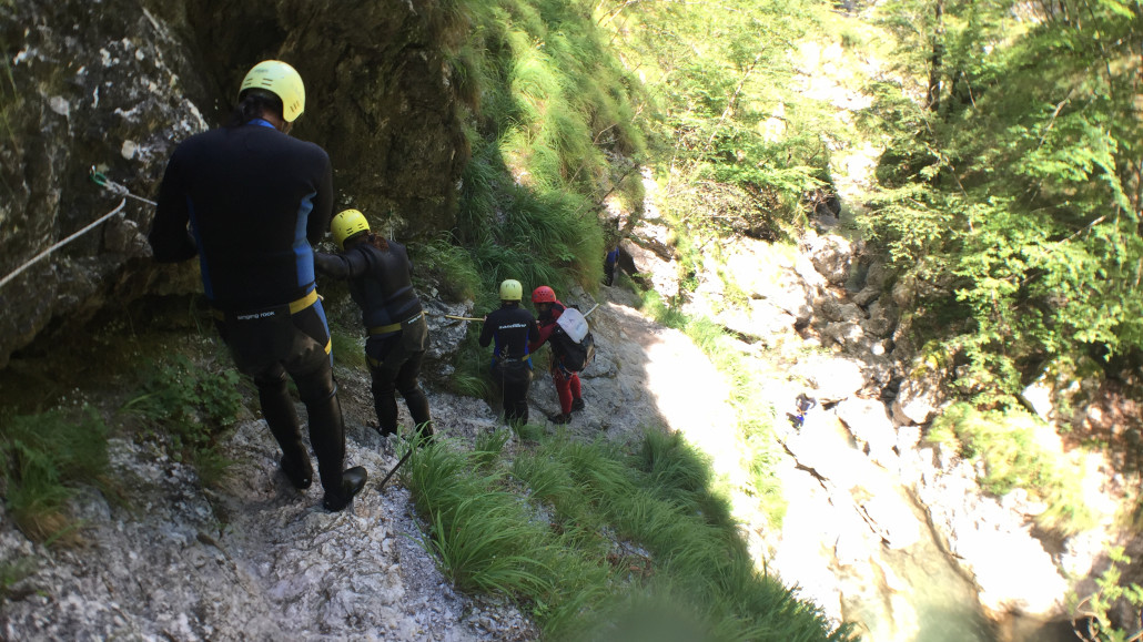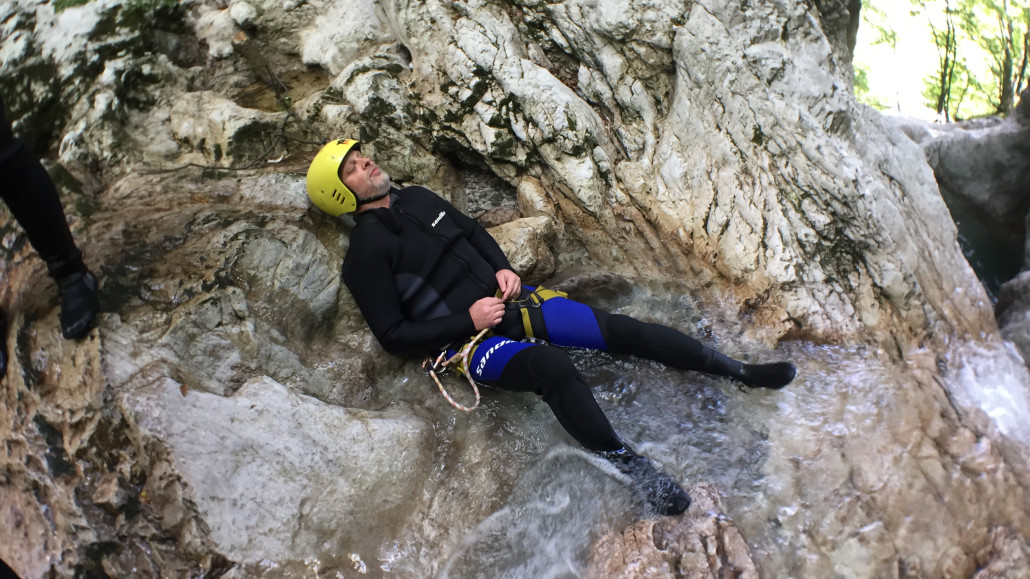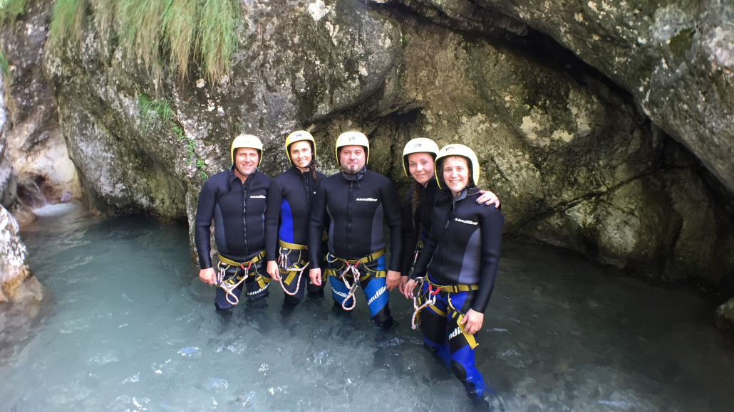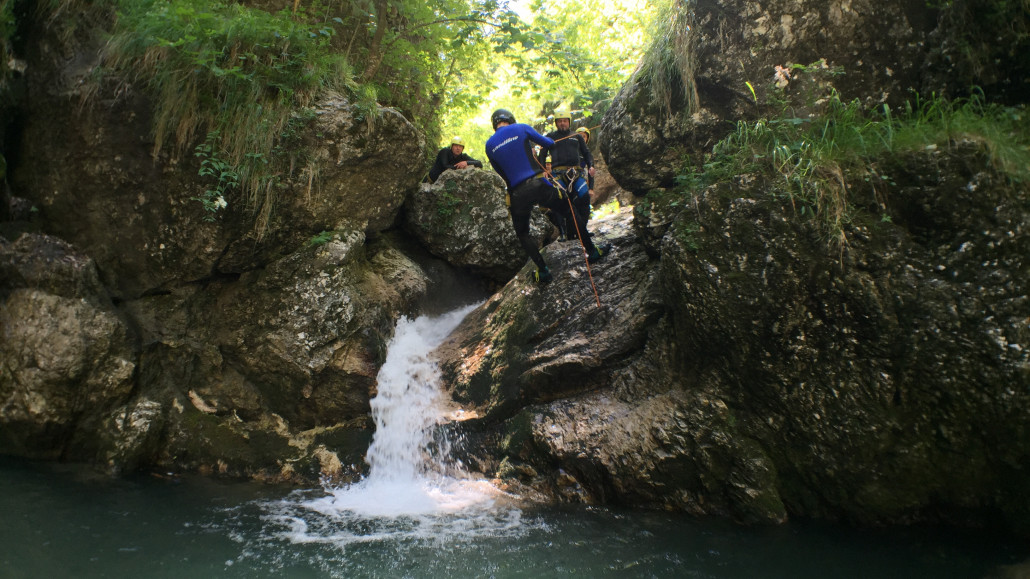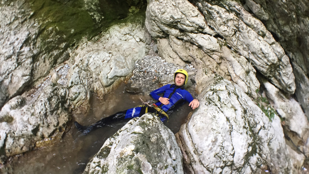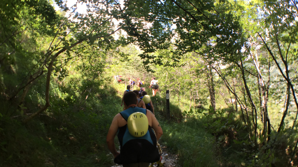 Im Zuge unseres Sommerprogramms ging es am 16. Juli 2017 für einige Blau-Weiß Villach Mitglieder ins schöne Sočatal nach Slowenien zum Canyoning. Nach einstündiger Fahrt durch Italien und über den Predilpaß erreichten wir schlußendlich das Raftingcamp in Srpenica. Dort fassten wir unsere Ausrüstung aus und fuhren zum Startpunkt der Tour. 30 Minuten sollte unser Aufstieg durch Wald und über schmale Wege zu unserem Einstiegspunkt in den Fluß Sušec sein. Die letzten Einzelheiten wurden besprochen und wir erhielten noch einige Anweisungen unseres Guides bevor es los ging…aber seht selbst…:)