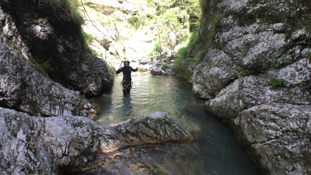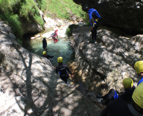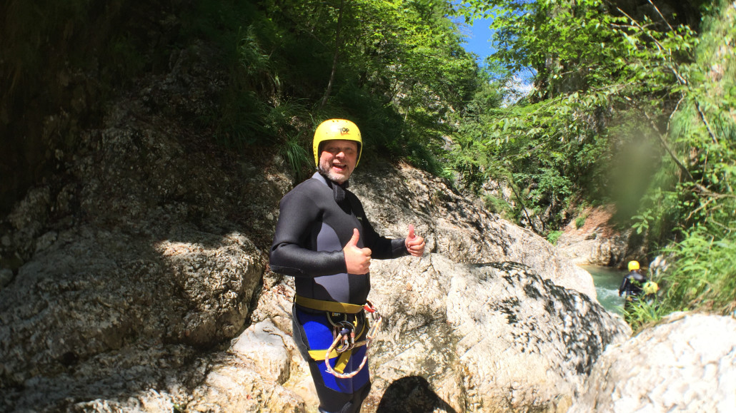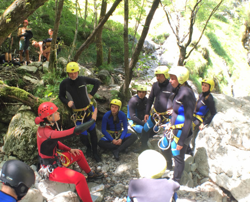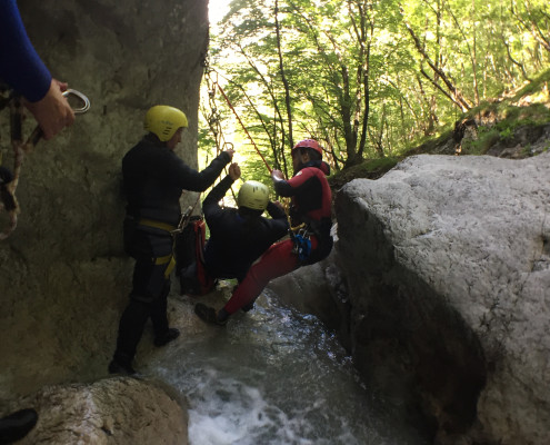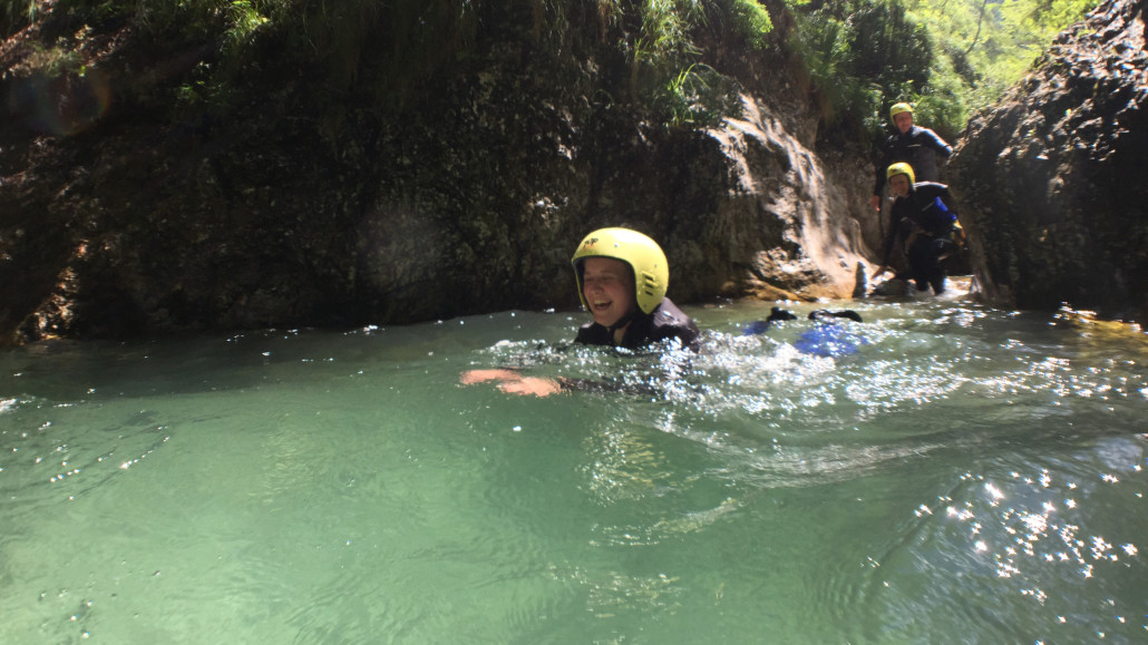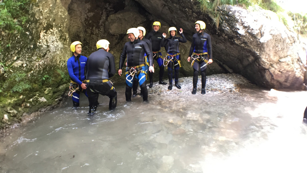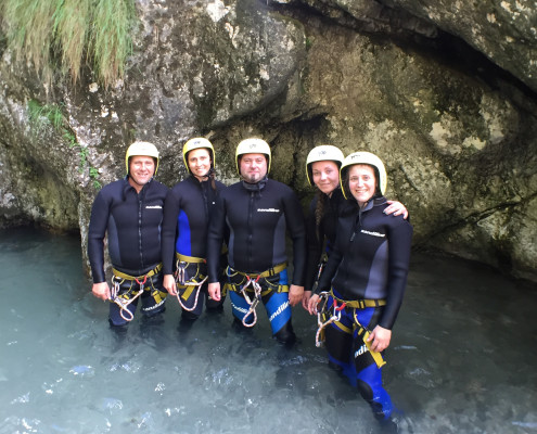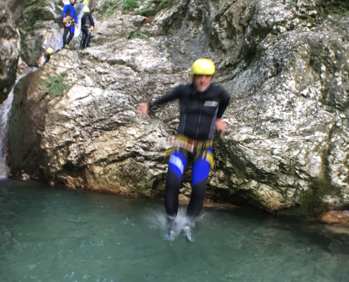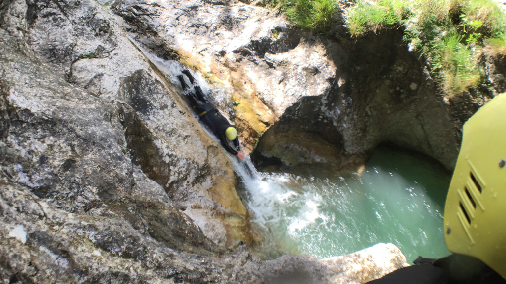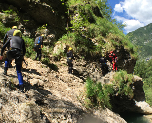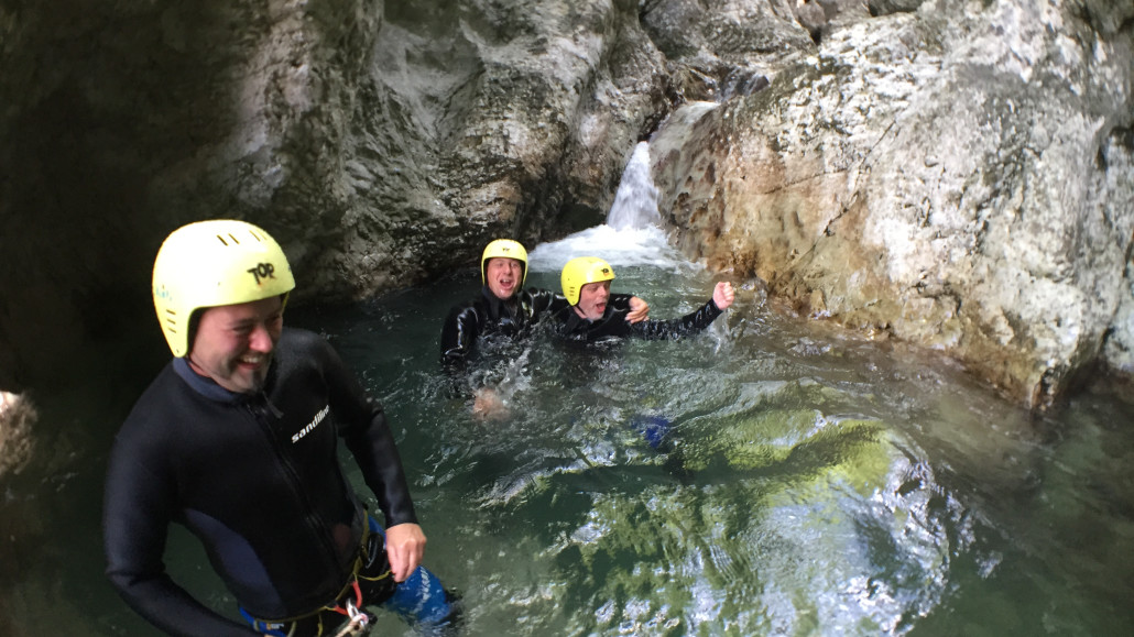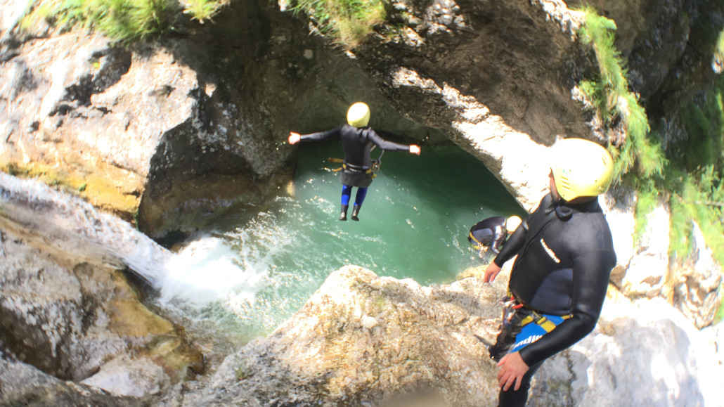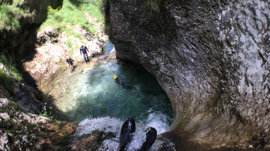 Im Zuge unseres Sommerprogramms ging es am 16. Juli 2017 für einige Blau-Weiß Villach Mitglieder ins schöne Sočatal nach Slowenien zum Canyoning. Nach einstündiger Fahrt durch Italien und über den Predilpaß erreichten wir schlußendlich das Raftingcamp in Srpenica. Dort fassten wir unsere Ausrüstung aus und fuhren zum Startpunkt der Tour. 30 Minuten sollte unser Aufstieg durch Wald und über schmale Wege zu unserem Einstiegspunkt in den Fluß Sušec sein. Die letzten Einzelheiten wurden besprochen und wir erhielten noch einige Anweisungen unseres Guides bevor es los ging…aber seht selbst…:)