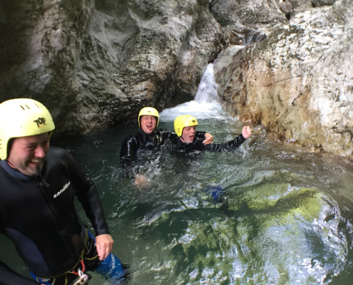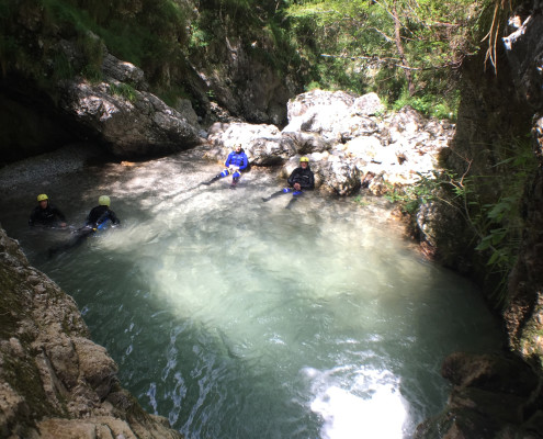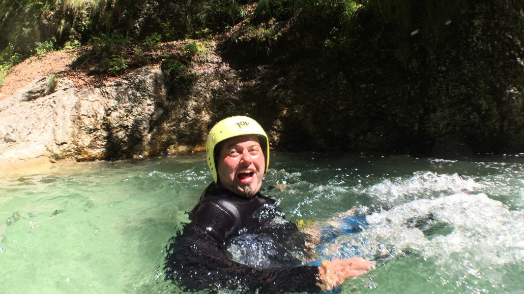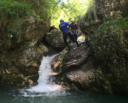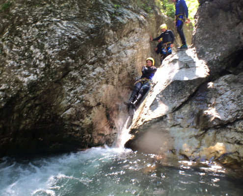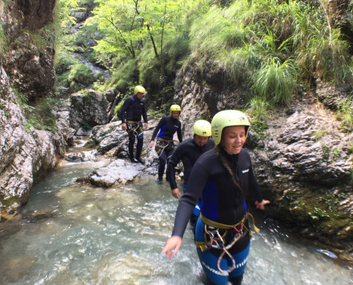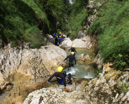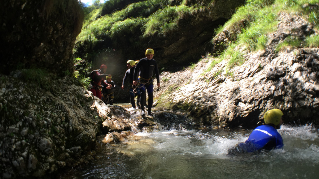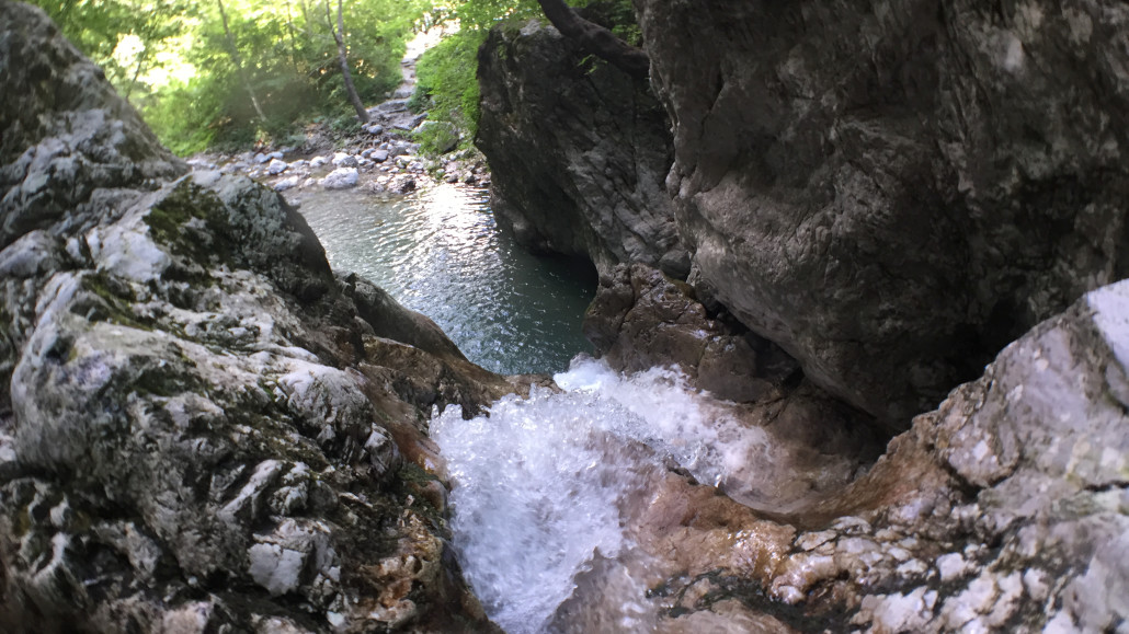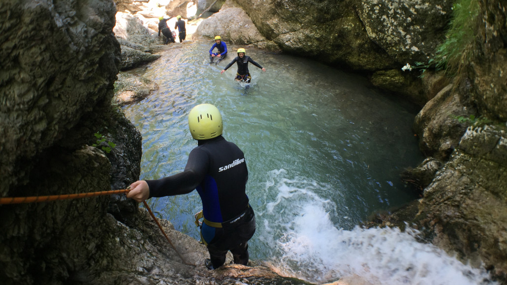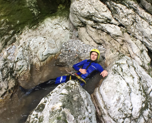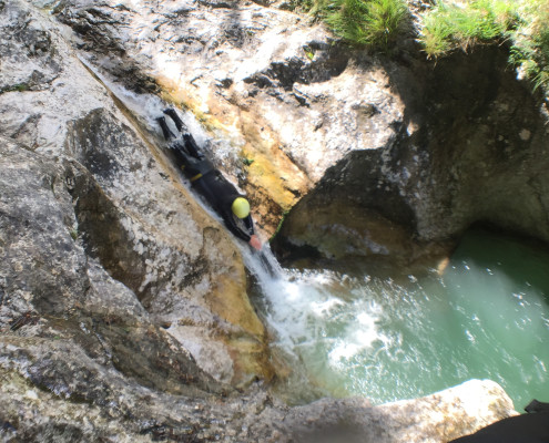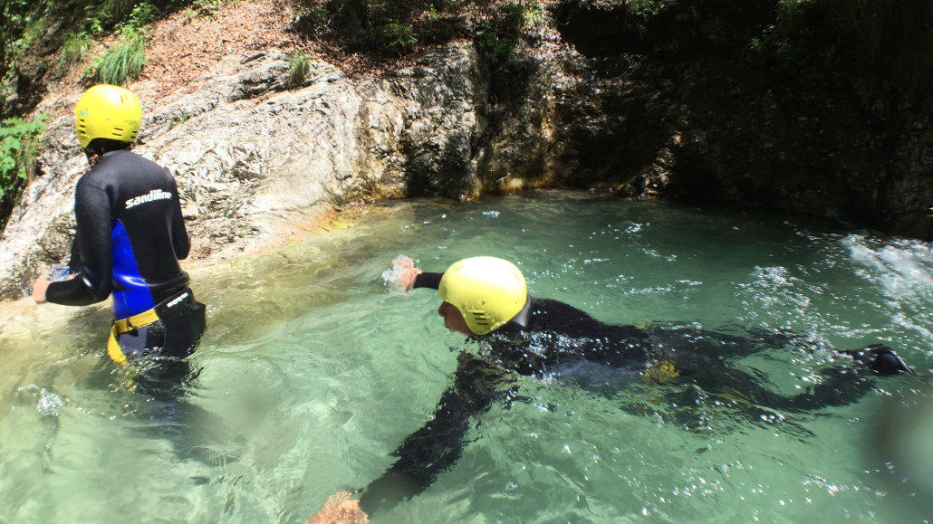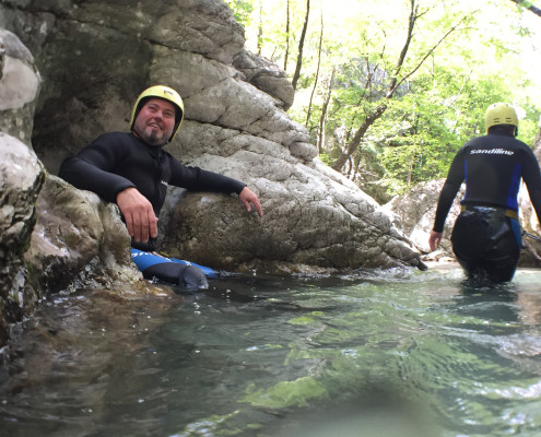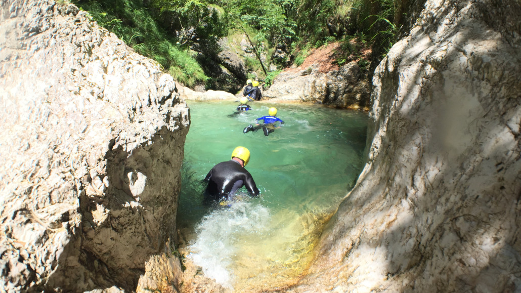 Im Zuge unseres Sommerprogramms ging es am 16. Juli 2017 für einige Blau-Weiß Villach Mitglieder ins schöne Sočatal nach Slowenien zum Canyoning. Nach einstündiger Fahrt durch Italien und über den Predilpaß erreichten wir schlußendlich das Raftingcamp in Srpenica. Dort fassten wir unsere Ausrüstung aus und fuhren zum Startpunkt der Tour. 30 Minuten sollte unser Aufstieg durch Wald und über schmale Wege zu unserem Einstiegspunkt in den Fluß Sušec sein. Die letzten Einzelheiten wurden besprochen und wir erhielten noch einige Anweisungen unseres Guides bevor es los ging…aber seht selbst…:)