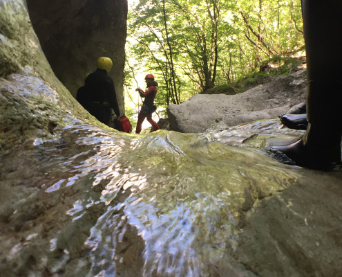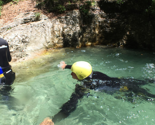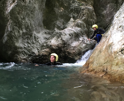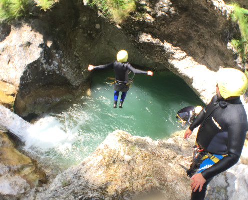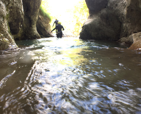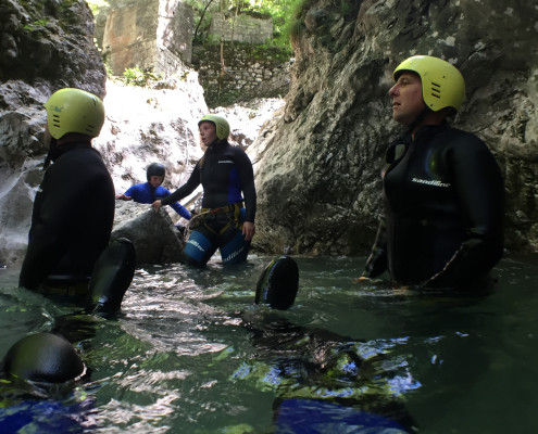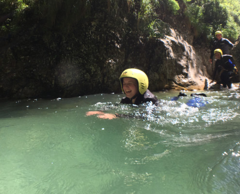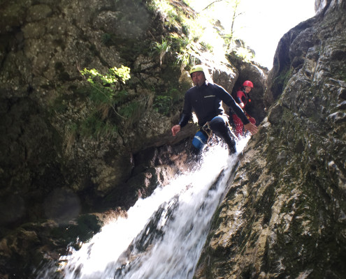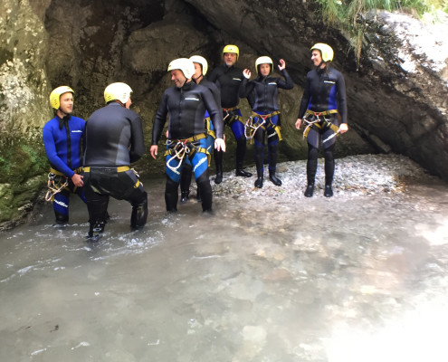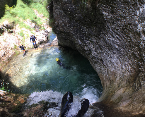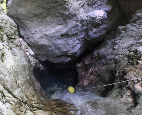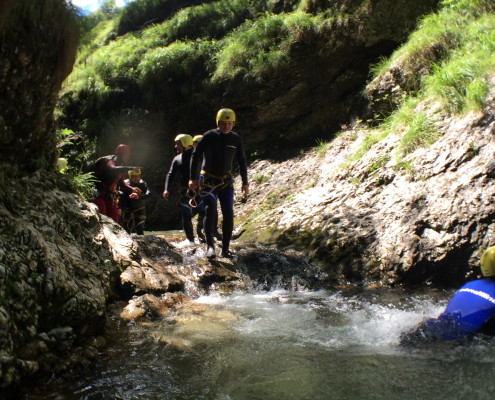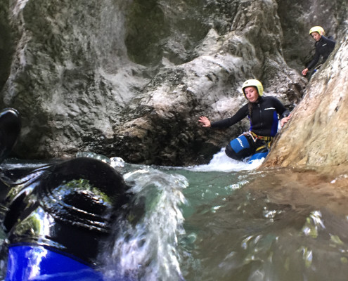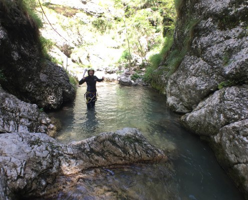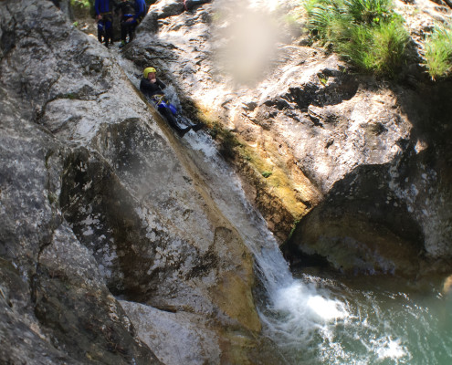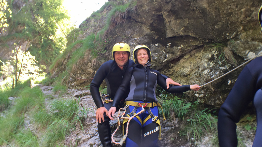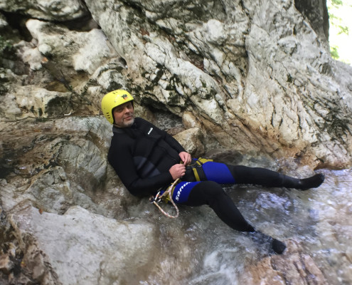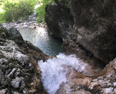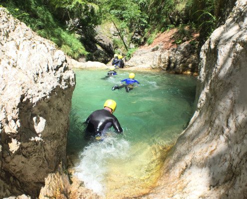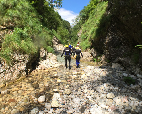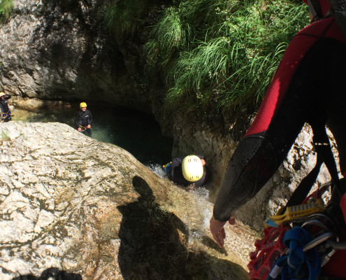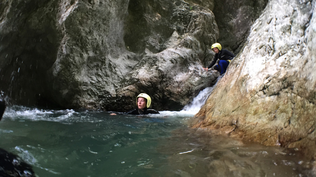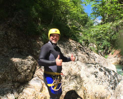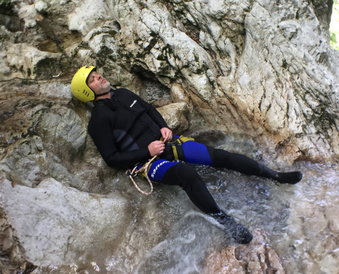Im Zuge unseres Sommerprogramms ging es am 16. Juli 2017 für einige Blau-Weiß Villach Mitglieder ins schöne Sočatal nach Slowenien zum Canyoning. Nach einstündiger Fahrt durch Italien und über den Predilpaß erreichten wir schlußendlich das Raftingcamp in Srpenica. Dort fassten wir unsere Ausrüstung aus und fuhren zum Startpunkt der Tour. 30 Minuten sollte unser Aufstieg durch Wald und über schmale Wege zu unserem Einstiegspunkt in den Fluß Sušec sein. Die letzten Einzelheiten wurden besprochen und wir erhielten noch einige Anweisungen unseres Guides bevor es los ging…aber seht selbst…:)
